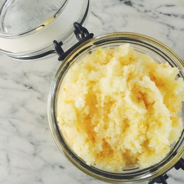 So those of you thinking that this book is about Kale recipes you are in for something far more wonderful. Her point is that whatever you put in your body should be natural and pure enough to use on the outside of your body and vice versa. I really appreciate her approach because when my three-year-old daughter was “helping” me to make the Citrus Blossom Sugar Brightening Scrub I had no reservations when she wanted to lick the “paddle” (her word for spatula. She thought it tasted “fantastic” in case you’re wondering). This was also the first time I had ever made a beauty product — natural or otherwise. Maybe it’s because I’m really cheap but the only things I use are a bar of Dove and Witch hazel but since trying her scrub I can’t wait to try some of her other beauty recipes. What I really loved about the scrub is that when the scrub had done it’s job, the coconut oil (an ingredient in the scrub) helped to moisturize my skin leaving it looking bright and dewy. It also felt really nice to take the time and relax in the shower — I know people swear by meditation but this scrub really takes relaxation to another level.