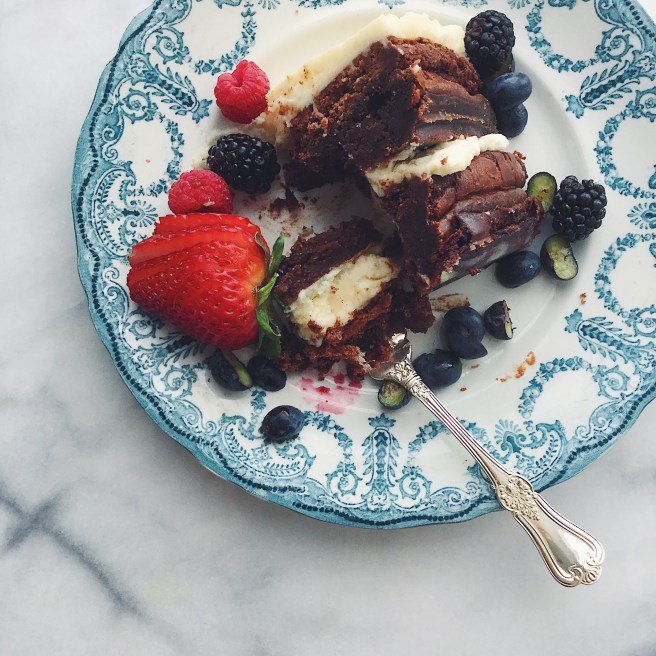 One of the most memorable recipes that I made from the book is her Chocolate Birthday Cake — a flourless paragon of a chocolate cake this recipe is one that her mother has made for all of her birthdays and one that McAlpine, herself, makes for her son’s and husband’s birthdays. So imagine my husband’s delight to receive this cake in celebration of his birthday a few weeks ago (he’s one of those “if it’s not chocolate it’s not dessert”-types). This two-layer fudge-y chocolate cake covered in a rich Mascarpone Icing is one that’s going to become the cake that everyone requests — however with 600 g of both chocolate and butter as well as a dozen eggs this is one treat that will be saved for those special occasions (it is here where I emphasize how incredibly rich, sweet, and magical this cake really is).