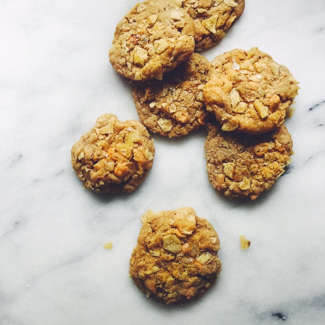 The book is organized into 6 chapters: Sweet & Savory Morning Treats, Cookies, Pies, Cakes, Refrigerator Desserts, and Confections. I found there are recipes to suit almost any occasion as well as any skill level (there are even a few recipes to entice and challenge even the most seasoned baker). While I’m yearning to try her Vanilla Yogurt Coffee Cake and the Cottage Pudding with Vanilla Sauce I’ve found myself waiting for an occasion (such as a birthday or anniversary) to try them. However there have been many smaller, single-serving treats that I’ve baked up for my family to enjoy — Cornflake Macaroons with Chocolate Drizzle and the Butterscotch-Potato Chip Balls for example. The cookie recipes yield anywhere from a little over one dozen to three dozen and what I really appreciate is that her yields are very accurate. I always feel like I’ve done something wrong when I can’t make the amount the recipe tells me I should be able to make. I’ve tried 5 recipes so far and have had five recipes turn out perfectly! What this tells me is that Sheehan really took the time to test these recipes well.