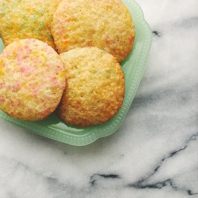 What I’ve really enjoyed about this book is the fact that it really lends itself well to baking with children. My four-year-old daughter was able to help me with all of the recipes I tried — mixing, scooping, decorating (who wouldn’t want a cookie that looks “super sparkly” like the Sour Cream Jumbles do??) and most certainly with the taste-testing part. I also think that when the holidays roll around I’ll be using this book to organize a cookie baking/cookie exchange party. I love how the recipes keep the vintage-y vibe but keep the flavours modern (Cinnamon Red Hots Popcorn!!) by using spices, fresh herbs, even booze.