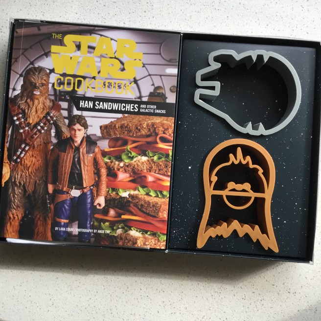 Cue the music: A long time ago in a kitchen far away….just kidding! But no. Seriously. Who doesn’t enjoy the Star Wars movies — at least the first three? My favourite will always be The Empire Strikes Back namely because two of my favourite screenwriters Leigh Brackett (think: The Big Sleep, Rio Bravo, The Long Goodbye) and Lawrence Kasdan (think: Body Heat, Raiders of the Lost Ark, The Big Chill) wrote it resulting in a really dark, yet nuanced and dramatic story. It’s not just a Sci-Fi film, it’s really so much more but you didn’t come here for my thoughts on movies! Part of why I’m excited for The Star Wars Cookbook by Lara Starr is because it’s an imaginative take on what a Star Wars-themed cookbook could be like. Did I mention it comes with themed sandwich/cookie cutters? As you’ll see from my pictures I’ve made good use of the Millennium Falcon and Chewbacca cutters.