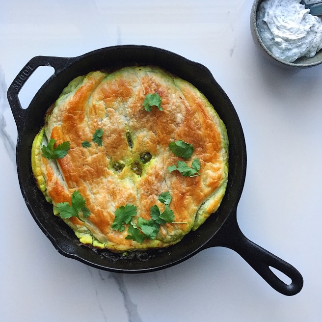 Samosa Skillet Pot Pie w/ Minted Yogurt Sauce, p. 155