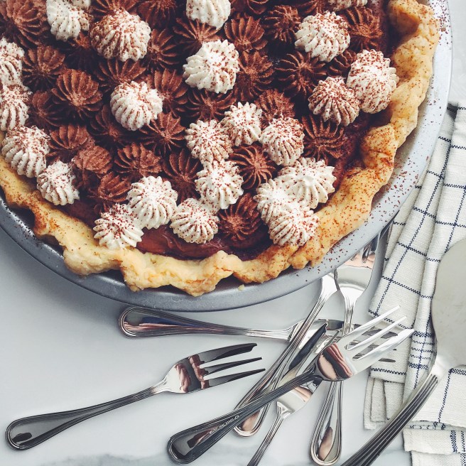Reading over the introduction I came to learn that Jana’s Bake Shop, located on Salt Spring Island in British Columbia, is famous for its pies! This fact got me excited because last week was Pi(e) Day (March 14th) and every year I bake a different pie. This year’s pie? The Chocolate Cream Pie using Roerick’s recipe for Pie Pastry Dough. Here is another case where a recipe has a family connection as it is one that was passed down from Roerick’s mother. I think this is the first year that I actually made a traditional pie crust. In the previous years I conveniently chose recipes with crumb crusts that you press into the pan because I was too intimidated by the though of trying to make a pastry crust. The Pie Pastry Dough recipe was simple to make and resulted in a gorgeously flaky crust. Interesting to note here: this recipe uses vegetable shortening instead of butter which, as Roerick explains, is easier to handle and holds its shape better when it’s baking. As a novice baker, I appreciate that she takes the time to explain the background of baking — such as the differences between using butter or shortening when making pastry crust for example.