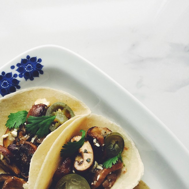 I found that the salsa section was more plant-based friendly than the chapter on taco fillings. Since I cook for my family of vegetarians, I’m always looking to see how many or which recipes are vegetarian. Out of the 20 filling recipes within this chapter 6 are vegetarian or vegan (with one of these being a recipe for a dessert taco filling). And, of the 5 savoury fillings, none of them included any type of pulse in the ingredient list. No beans of any sort, which, to be honest, surprised me. However, the vegetarian fillings rely on ingredients such as: squash, corn, potatoes, mushrooms, eggplant, spinach, and bell peppers. I made the recipe for Roasted Wild Mushroom Tacos w/ Queso Fresco and they were delicious! In this taco, the mushrooms are the star as there isn’t any other big ingredients. The mushrooms offer a meaty and satisfying texture.