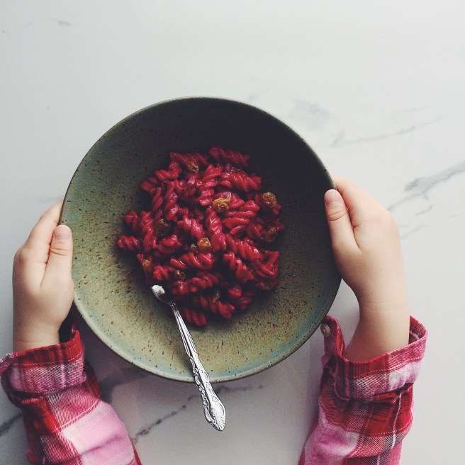 The true magic behind Ruffage is how Berens entices the home cook to see ingredients in different ways. For someone who has grown up eating and enjoying vegetables I wasn’t sure what there was left to learn but, as with anything, there is always more to learn. Having a few beets in my crisper, I flipped to the section on “Beets” to see what Berens was offering. I love beets with their sweet earthiness. It’s those earthy-tones which can affect their palatability to kids (like my 5-year-old daughter) so I was pleasantly surprised that the recipe for Beet-Dressed Pasta w/ Golden Raisins and Poppy Seeds was so well-received. The rich magenta would lure my daughter in, but would she go for the flavour? Yes, in fact, she would and with gusto too. Raisins can be a take-it-or-leave-it affair but since these golden raisins are soaked (with the soaking water being added to the saucy beet puree) I found that the soaking greatly improved and really transformed the raisins dry texture into something supple and chewier.