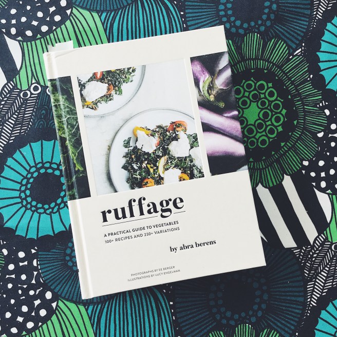 While many parents would use the threat of vitamin or nutrient deficiency to cajole their kids into eating their fruits and vegetables, my mom always told us to “eat up, you need the ruffage!” So, I suppose this is how Abra Berens‘ new cookbook, Ruffage, came to catch my eye. And, while reading through the rich stories Beren’s puts forth at the beginning of each section, she too has been subject to this refrain — “You gotta get your ruffage!”(233). What I came to learn as an adult is that “fiber” is the much more delicate term which can be used in place of ruffage — the idea that the plant fibers that do not completely breakdown in the intestinal system help to regulate digestion. But, I digress, for what Ruffage is offering is a real guide to vegetables and how to prepare and cook them.