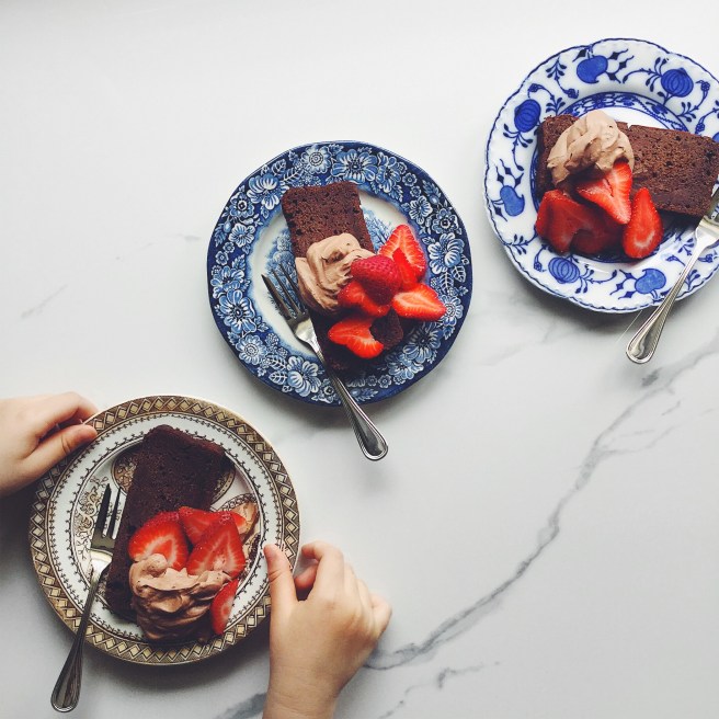 Speaking of recipes that pull double duty, Copeland’s Chocolate Snacking Loaf is delightful and the recipe yields two gorgeously chocolatey loafs (or, one Bundt cake because the genius that Copeland is has already figured this out and left directions on how to bake the recipe this way should you so desire). The indulgence of a cake in the everyday treat of a loaf! When I made this recipe, I did so with the express purpose to bake and share. I was meeting up with my friend and I knew she’d appreciate a little surprise. A small abundance shared makes everything a little better! Over the week, my family enjoyed this loaf à la Julia Turshen (with strawberries and cocoa-laced whipped cream) and it was delightful! My daughter also didn’t object when I cubed up a small piece to add to her lunch.