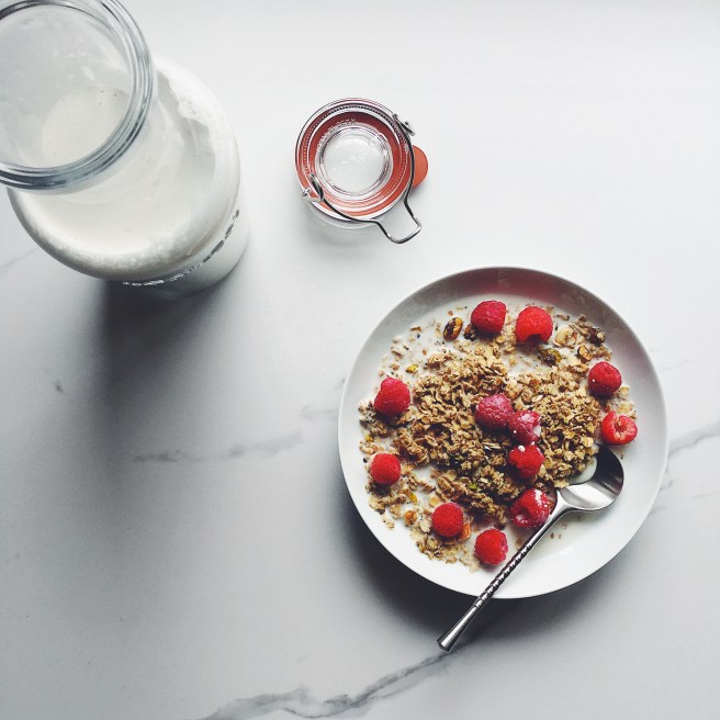Homemade Oat-Almond Milk, p. 219/Toasted Many-Seed Muesli, p. 22