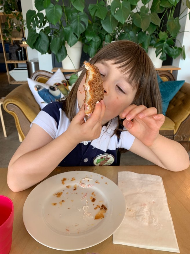 This convivial atmosphere extends to the back of the house as well. Best employs tremendously talented and kind people. To say that my daughter is attached to the people who work there is a bit of an understatement. At the beginning, during those first visits, it was the original front of house manager, Sadie, who befriended my daughter. Sadie was happy to talk about whatever my three-year-old was of a mind to discuss, with each visit Birdies became “our place.” When Sadie left to go off to do other things, she assured Katie that she would love the next person just as much. At that time, I thought the tears would be never-ending but after meeting the new bakery manager, Ray, Katie was alright. Now a visit to Birdies isn’t complete without seeing Ray (also a talented artist whose work adorns the walls of the café), Jessica, “Maggie the Baker,” or any of the other friendly, smiling faces.