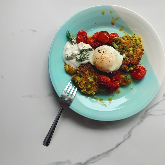 I found that their breakfast recipes worked very well for our “breakfast for dinner” lifestyle — the Soft-Boiled Eggs w/ Herb Butter Toast Dips, Almond Blender Pancakes, Warrior Three-Egg Omelet, and The Dilly Dally (homemade Tzatziki, Zucchini Fritters, roasted tomatoes and eggs) — were all recipes that we enjoyed at dinnertime. Maybe it’s because breakfast always seems more relaxed and casual it feels great to have those feelings at 5 o’clock! I also found that the myriad ways in which Toderic and Lucaciu cook eggs helped me to get out of my scramble eggs rut (and, it also reminded me that all those egg cups we’ve collected could be enjoyed and put to good use).