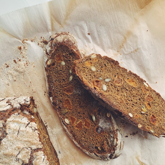 So, with this first recipe I decided to give some of the other gluten-free recipes an honest try. While I didn’t get into making her gluten-free sourdough, I found many other delicious recipes, such as the Roasted Squash Brown Butter Cake (that I made as mini Bundts and doughnut holes because she gives directions on how to bake this for children). These mini cakes were light in texture, perfectly spiced, and with that signature nutty flavour of the brown butter. Moist and with a beautiful crumb — this is what cake should be. Then my daughter looked forward to Friday all last week because I told her we’d have the Buckwheat Crepes for dinner (I didn’t bother to mention that I had a jar of Goyoaga’s Chocolate-Hazelnut Butter already made and in the fridge because I was afraid if this fact was known the jar wouldn’t last until Friday — my husband and daughter are chocolate fiends!). The best of all was the boule of Buckwheat Sweet Yeast Bread w/ Dried Apricots and Walnuts (I used pumpkin seeds so I could send slices in my daughter’s lunch). This bread is incredible — moist with a thin, crunchy crust and such a divine scent (molasses, orange zest, lemon zest, grated ginger, cinnamon…). What I really think is that Goyoaga’s gluten-free recipes transcend this qualification to become just great recipes that are incidentally gluten-free. Sometimes good food is just good food — no category or qualification is needed.