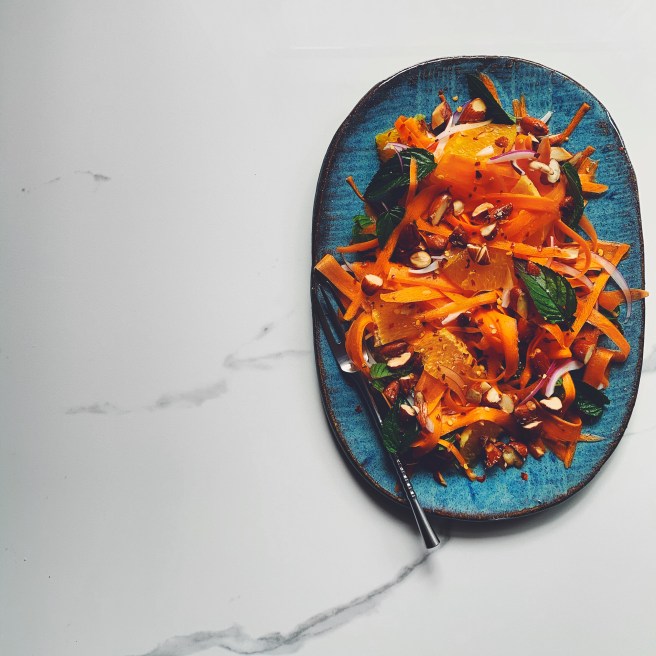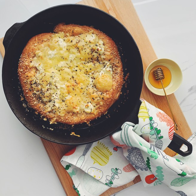 I found that Kosher Style has many great meal ideas — one of my favourites because it’s fresh and so quick to make is the Orange & Carrot Salad. It’s exactly what Rosen says in the recipe head notes, “It’s a reminder that a few simple ingredients can come together to make a greater whole” and, so, with the long and loopy carrots ribbons, juicy orange segments, red onion, mint, red pepper flakes and an easy dressing this salad tasted so extra and looked exquisite on the plate. The whole here is greater than the sum of its ingredients. While it makes a colourful side addition at any meal, I made it a big meal for one (don’t judge) on an afternoon when I was just making lunch for myself. I probably should have waited and served it along with the Roasted Garlic & Three-Cheese Skillet Pizza I made my family, but I decided to treat myself. Speaking of that pizza, it’s an incredible combination of Parm, mozzarella, and goat cheese made even better by smearing jammy roasted garlic all over the crust to start and drizzling honey to finish. I really appreciate that Rosen advocates the use of store-bought dough here and the resulting pizza will end any relationship to a pizzeria you might have — she shows how you can achieve pizza magic using a hot oven and a cast iron skillet.