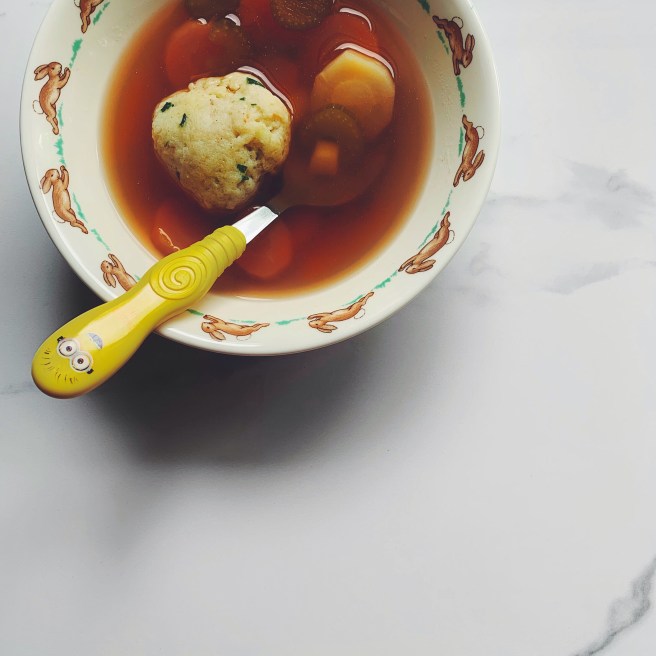 This book cooks up like a cookbook — it has all of the great recipes accompanied by delicious-looking, well-styled pictures — but it also reads a bit like a travelogue and a bit like a memoir (and don’t get me started on those delightful Alanna Cavanagh illustrations). With each new chapter Rosen presents a short story relating to the food within that chapter — like her recipes, her storytelling invites the reader to enjoy. Her recipes are organized into five chapters — Brunch & Schmears, Soups & Such, Noshes & Sides, Eat! Eat!, and A Little Something Sweet. Rosen’s recipes suit a range of home cooking abilities — none of the recipes are difficult although some may take more time to make than others (hey, Bialys! I’m looking at you!). That being said, many of the recipes I tried could be made for dinner any day during your busiest week. In the middle of trying out recipes for this review my daughter had started kindergarten and within the first week had gotten her first school cold! But you know what? Kosher Style had me covered — with a batch of Matzo Ball Soup my daughter felt better! Although I made my soup vegetarian it still felt like a hug in a bowl (maybe even more medicinal than the chicken noodle soup I used to have when I got sick as a kid). With all the recipes I tried, each recipe felt like best kind of comfort food.
