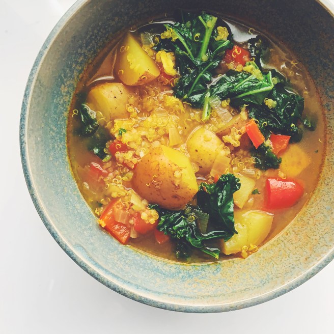 Winter is the time when I look for those warming, comforting recipes and, the recipe for Mixed-Potato Quinoa Stew totally fits this criterion. Red onion, garlic, chiles, and some warming spices give this stew a great base for the potatoes, greens (I used kale here), quinoa, and bell pepper. I appreciate a good chunky stew/soup that eats like a meal and, like all the recipes in this book, can be made ahead of time and frozen. Since it also keeps well in the fridge, we enjoyed it over a couple of meals. And, while I haven’t given it a try yet, I feel like this stew would be a great lunch to send to school with my daughter too.