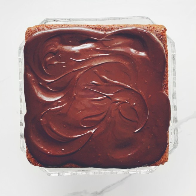 Back to that cake! Inviting my friend over after such a large gap between our home visits, I knew I wanted a cake that was homey yet interesting and, the recipe for Honey Sesame Cake seemed to fit my yearning. While toasted sesame oil, honey, and chocolate seem like unlikely bedfellows, the combination offers a rich pairing which is subtle in its sweetness and is laced with a quiet umaminess from the bittersweet chocolate ganache. The cake was undeniably moist and so delicious that I almost rethought my earlier decision to send the leftovers home with my friend! That Honey Sesame Cake smothered in Ganache looked unassuming in it’s little 8X8” pan but as I cut and plated squares of cake, it smelled so wonderful I couldn’t wait to taste it. Honestly, I think we could have eaten the whole thing, but my friend stopped herself after the second slice and I after my first, knowing that her family would have more to enjoy if I stopped and that I could just bake myself another if I needed to.